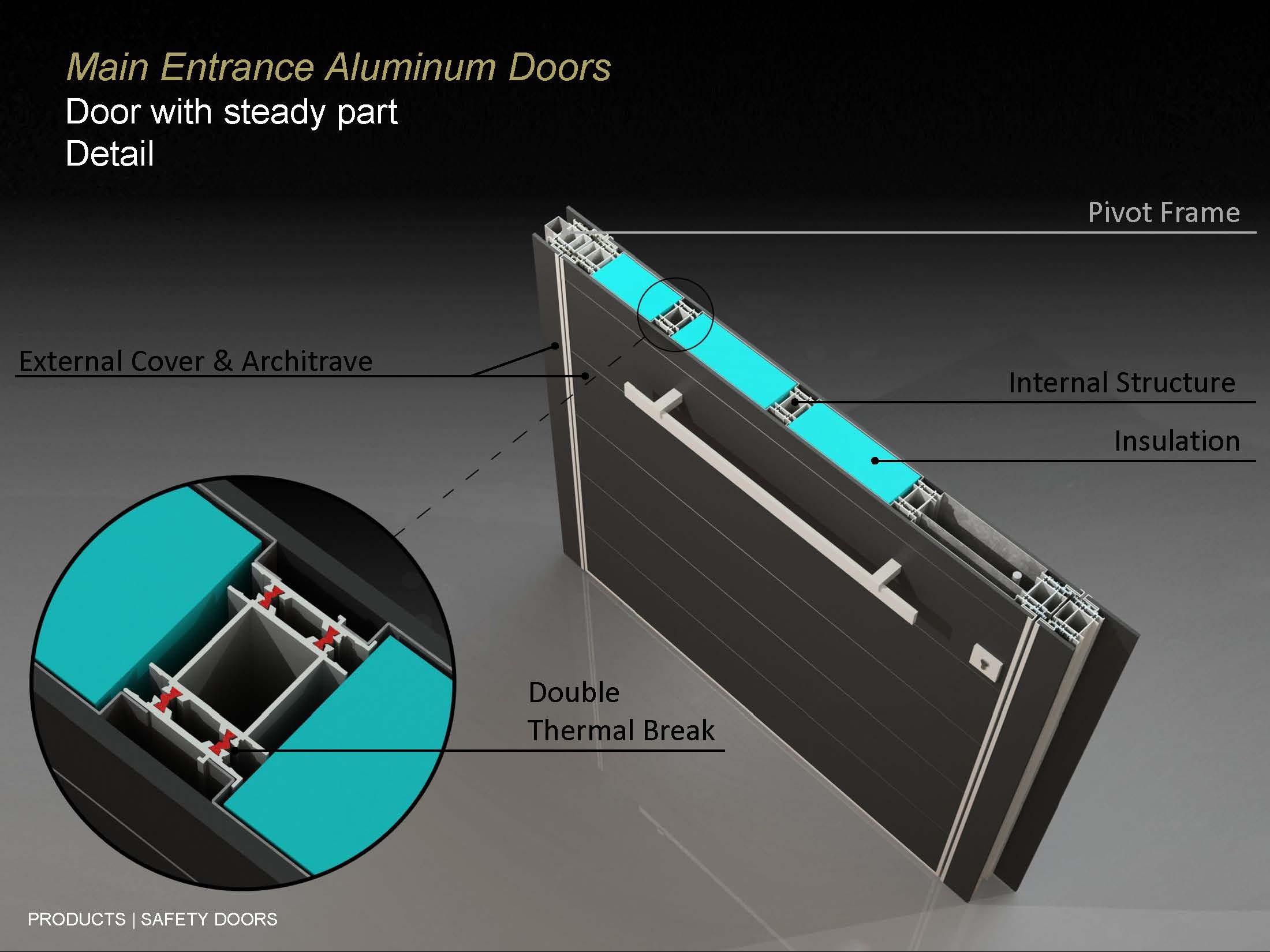 Tocul usii este din profil de aluminiu cu 8 camere pentru izolatie termica.