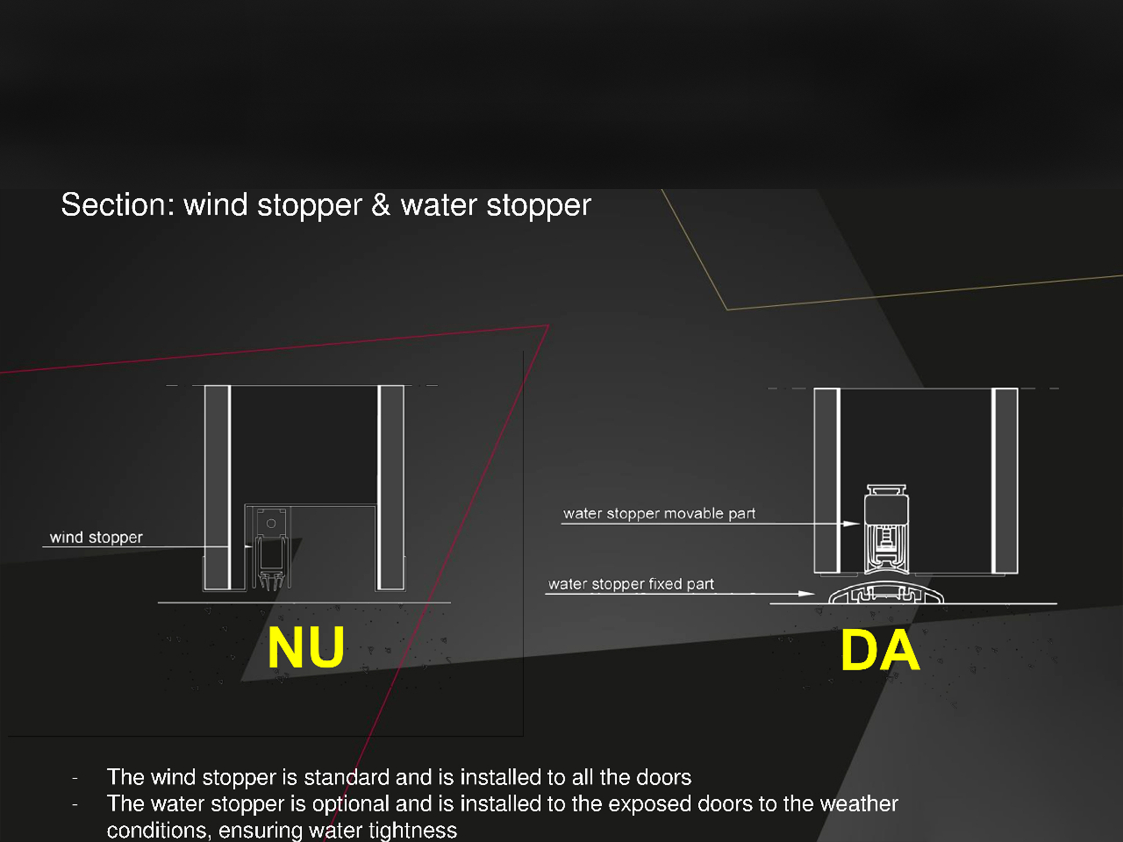 Sistemul de prag etans si chederele perimetrale ( 1 cheder pe toc + 1 cheder pe foaia de usa ) asigura foii de usa, etanseitate perfecta