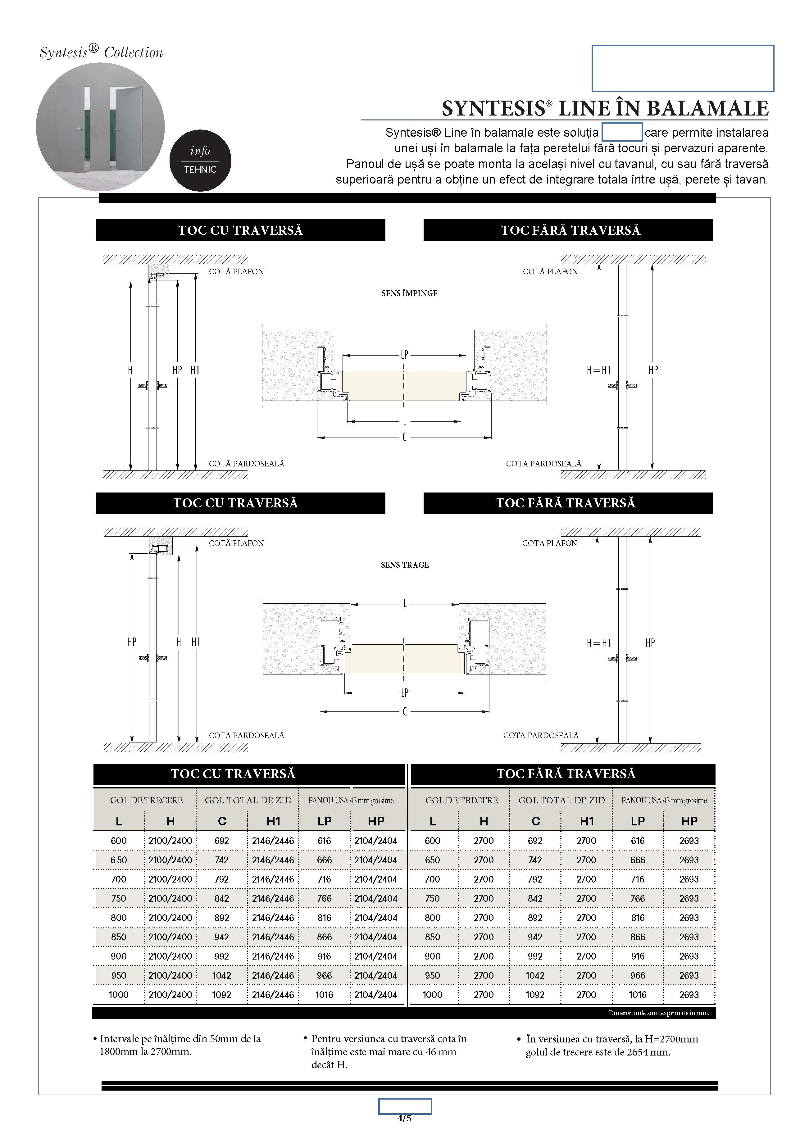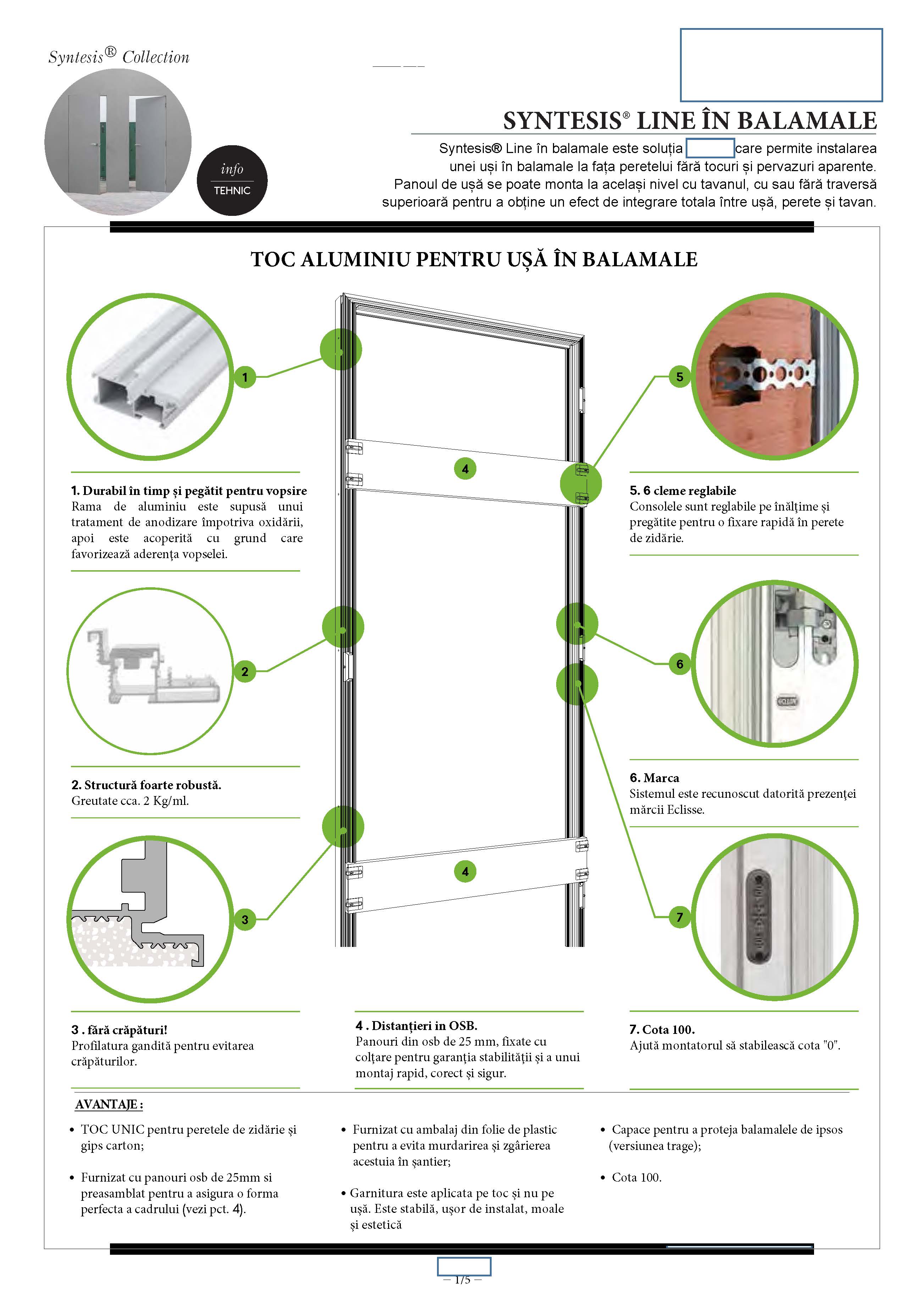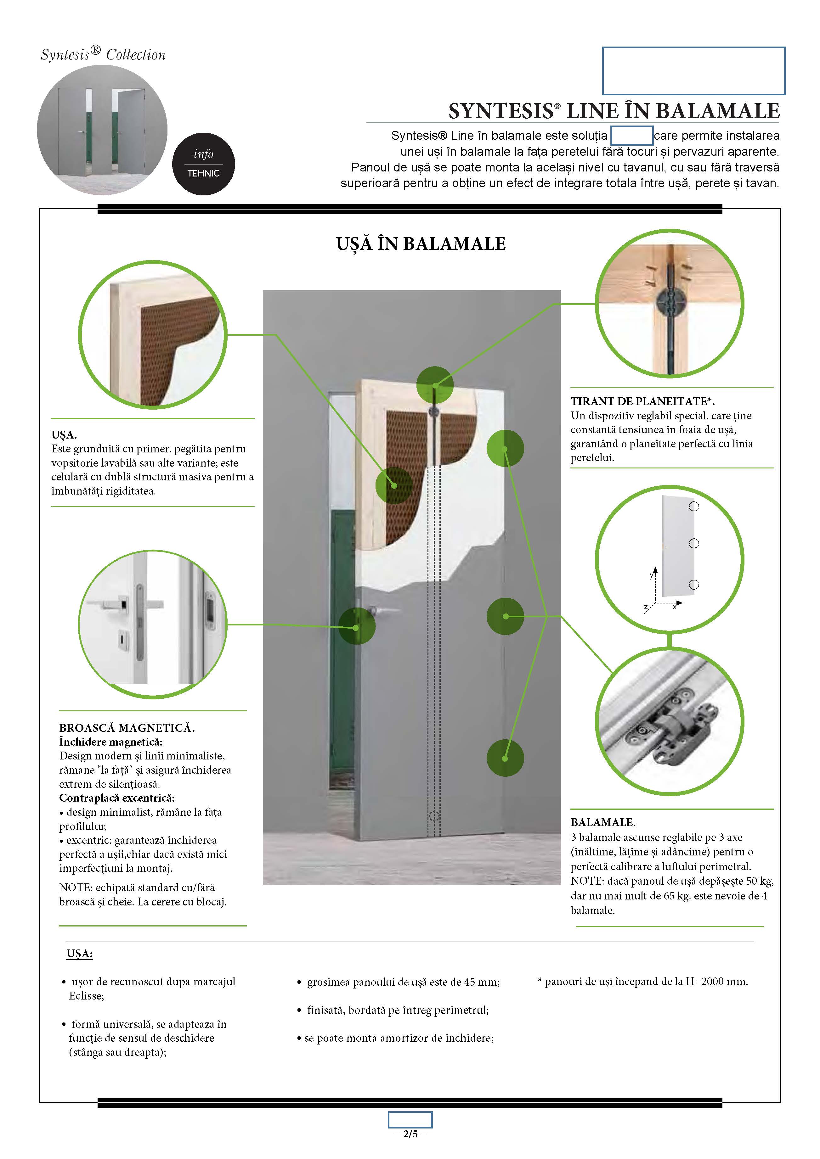 Balamale sunt de tip greu cu 2 reglaje si sistem deschidere pe rulmenti.Izolatie fonica si termica este realizata cu vata minerala.